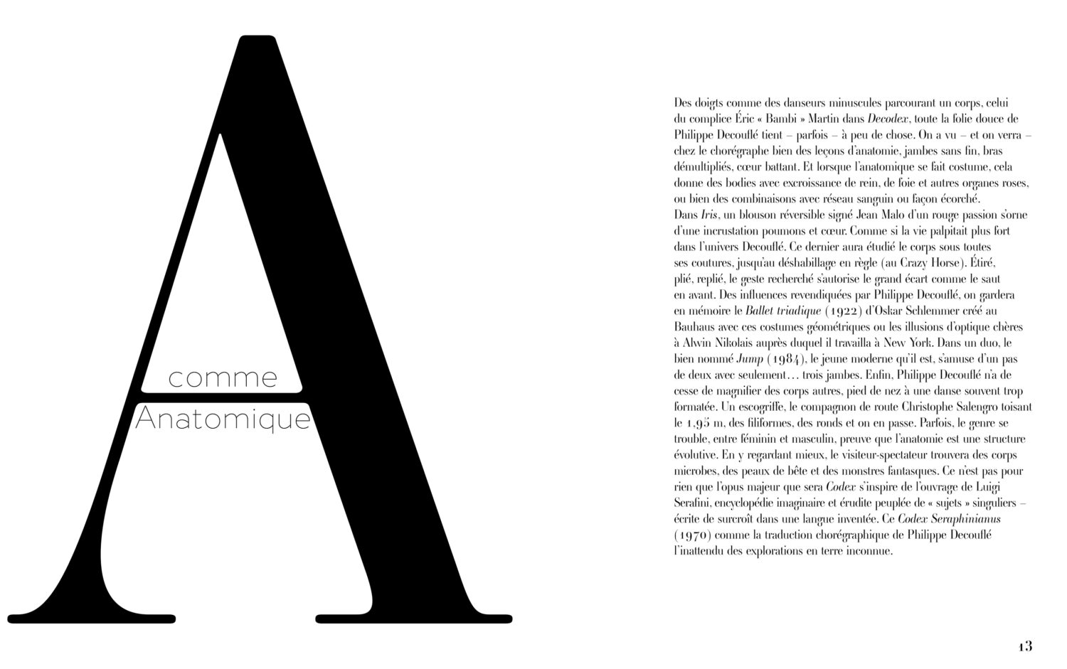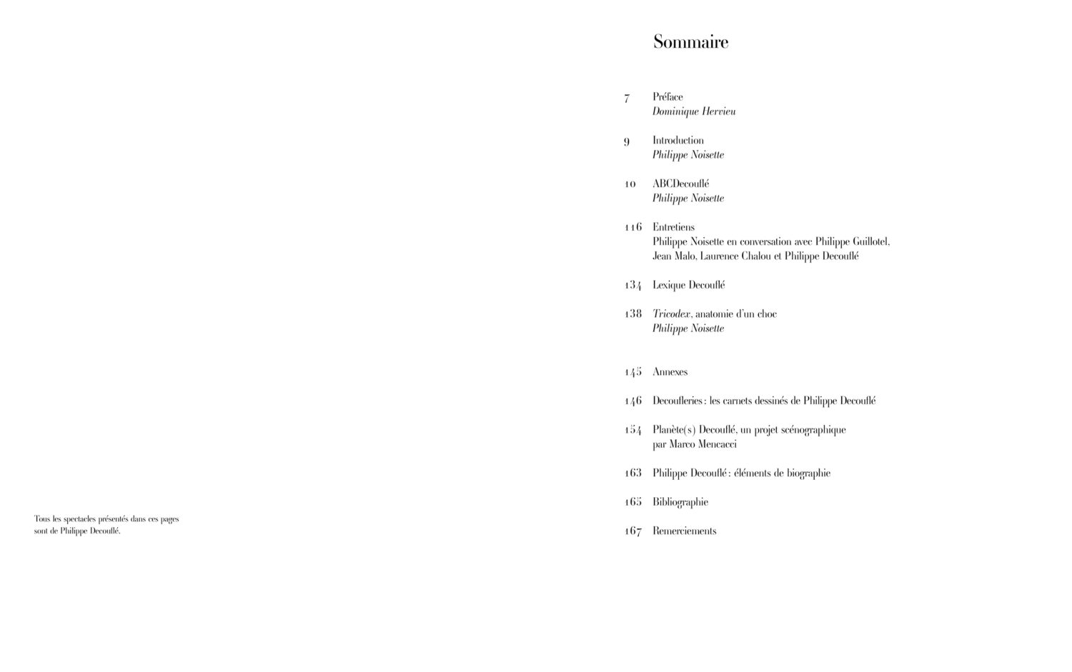 The volume opens with a section titled “ABCDecouflé”, guiding the reader step by step through the architecture of the choreographer’s imagination. The book highlights Decouflé’s powers of metamorphosis and wit, bringing together tailoring skills and shadow play, rock and sport, to conjure up an idiom that reflects the breadth of his artistic vision. An essay on the play Tricodex and previously unpublished interviews with fashion designers and Decouflé offer a privileged insight into his creative processes. Lastly, sketches from the choreographer’s notebooks and pictures showing the layout of the exhibition provide a different perspective of his work, a landmark in contemporary dance.