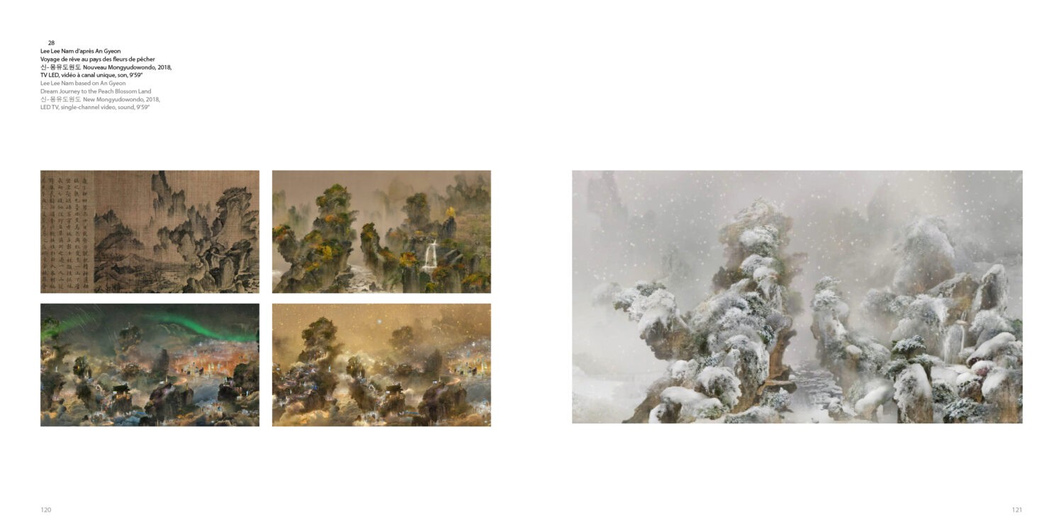 Despite all their differences, the mountains rendered in ink by Ji-Young Demol Park and Lee Lee Nam’s virtual landscapes are truly united by the uniqueness of their relationship with this cultural heritage as well as the strength of their individual universes, oriented towards the re-enchantment of nature. Like Jeong Seon, the painter of “authentic landscapes” and of the Diamond Mountains, both artists refer to and ceaselessly combine a vast body of works that extends far beyond their homeland, transforming their interpretation of mountains into a means of meditation, a revelatory connection with the beauty of the world past and present.