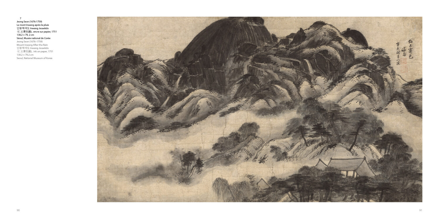 The evocation of nature unfolds through connections interwoven over the centuries between culture and objects, materials, colors, and motifs. Jade- and pine-colored decorated ceramics, cobalt oxide for the horizon, porcelain white as snow or the moon, all feature in the work of both artists, their gazes meeting and reflecting in the landscapes of a great painter of old, Jeong Seon (1676-1759).