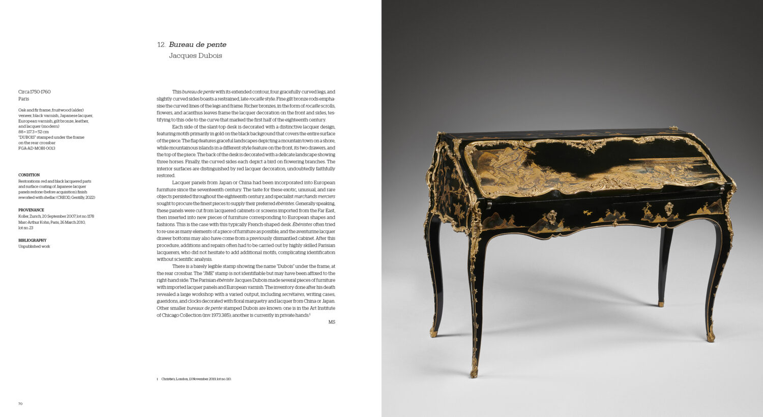 Edited by Fabienne Fravalo, curator of the decorative arts collection at the Fondation Gandur pour l’Art, this catalogue is introduced by two essays, written respectively by Sophie Mouquin, lecturer at the University of Lille, and Caroline Heering, professor at the Catholic University of Leuven. It presents the major objects in the collection, studied and analysed by curators and scholars working in German, American, English, Belgian, French and Swiss institutions.