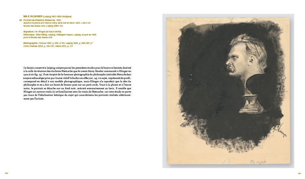 Friedrich Nietzsche et les artistes du nouveau Weimar, dont cette sculpture constitue le point focal, accompagnée d’une série de tableaux, de dessins, de moulages en plâtre et de petits bronzes, se propose de montrer comment Klinger et ses mécènes ont inventé le Nietzsche « officiel », transformant un portrait hautement expressionniste en une image culte, classique et idéalisée. L’exposition comprendra aussi un ensemble d’éditions anciennes des livres les plus influents de Nietzsche, notamment des éditions de luxe des ouvrages Ainsi parlait Zarathoustra, Ecce Homo et Dithyrambes de Dionysos produites par Henry van de Velde. Enfin, elle réunira des œuvres d’autres protagonistes du « Nouveau Weimar », dont Auguste Rodin, Aristide Maillol, Edvard Munch et Kurt Stoeving, de manière à offrir, pour la première fois en Amérique du Nord, un éclairage sur cette extraordinaire constellation artistique et culturelle du modernisme.