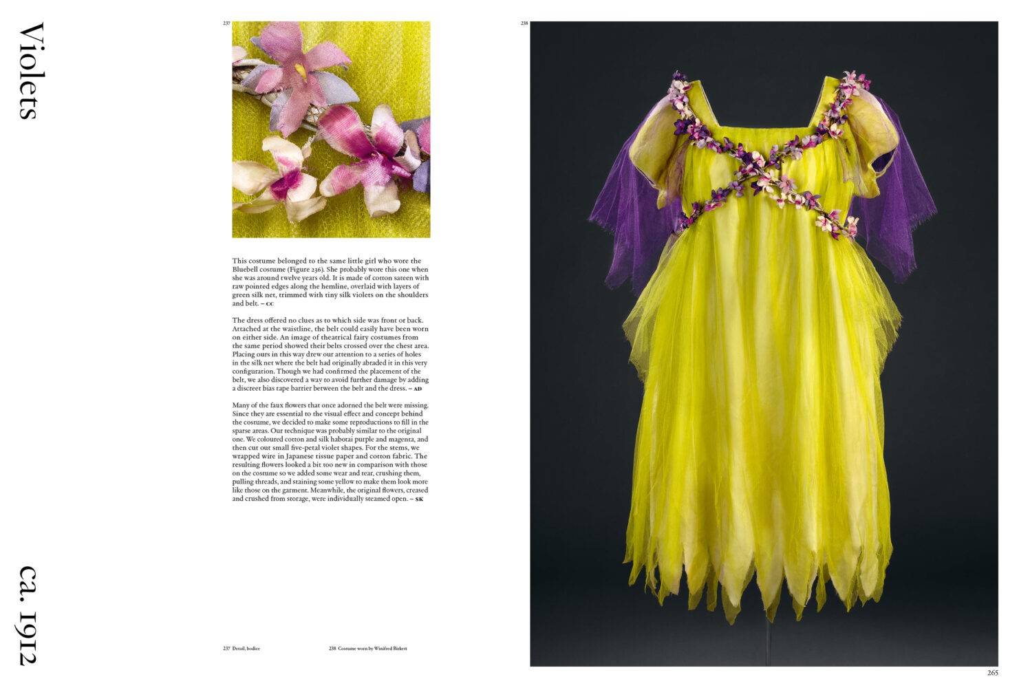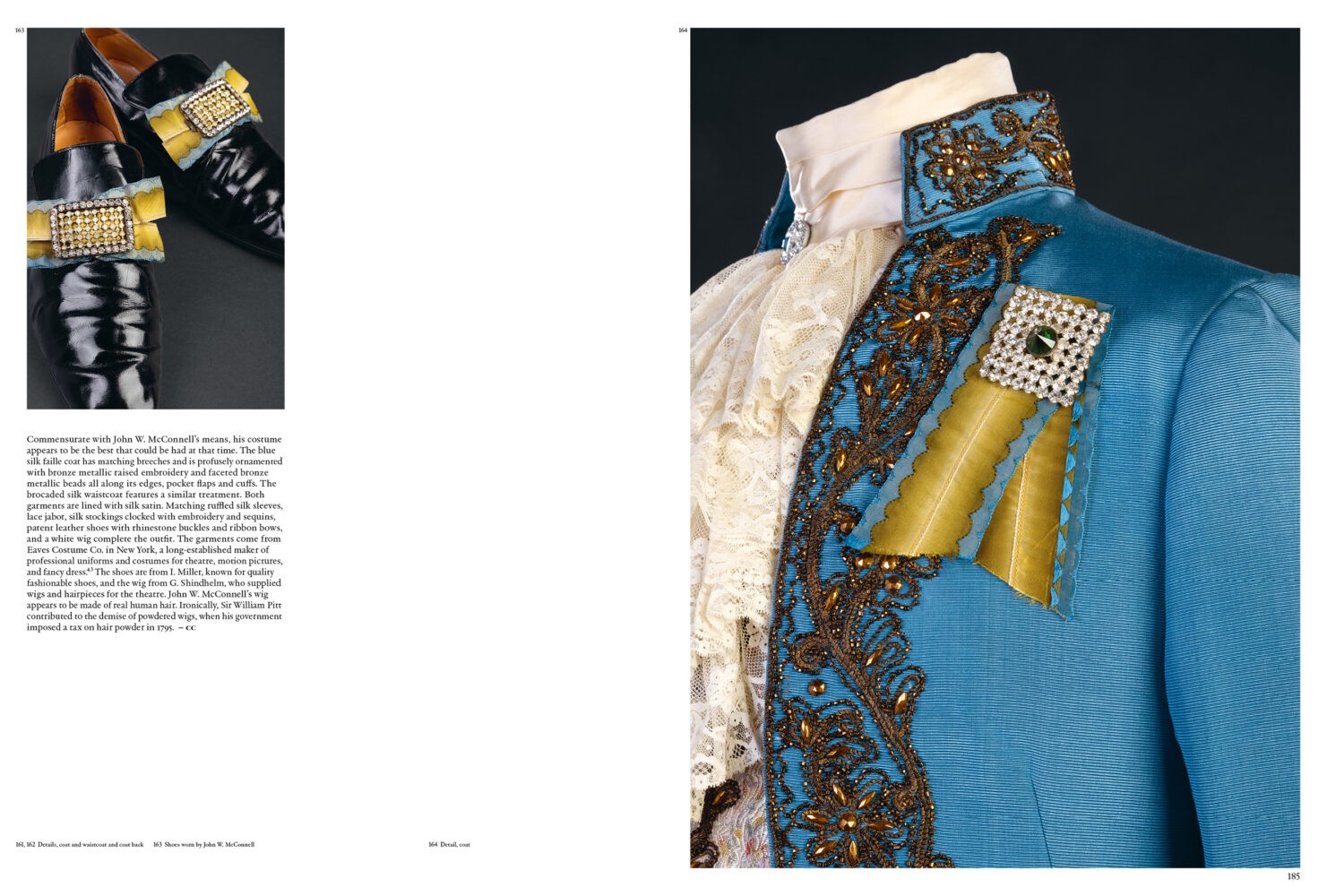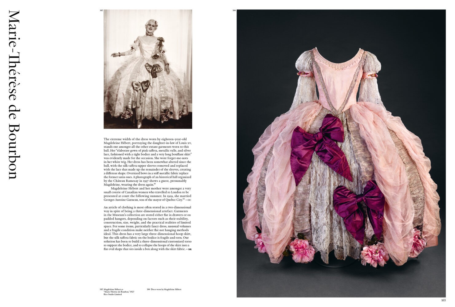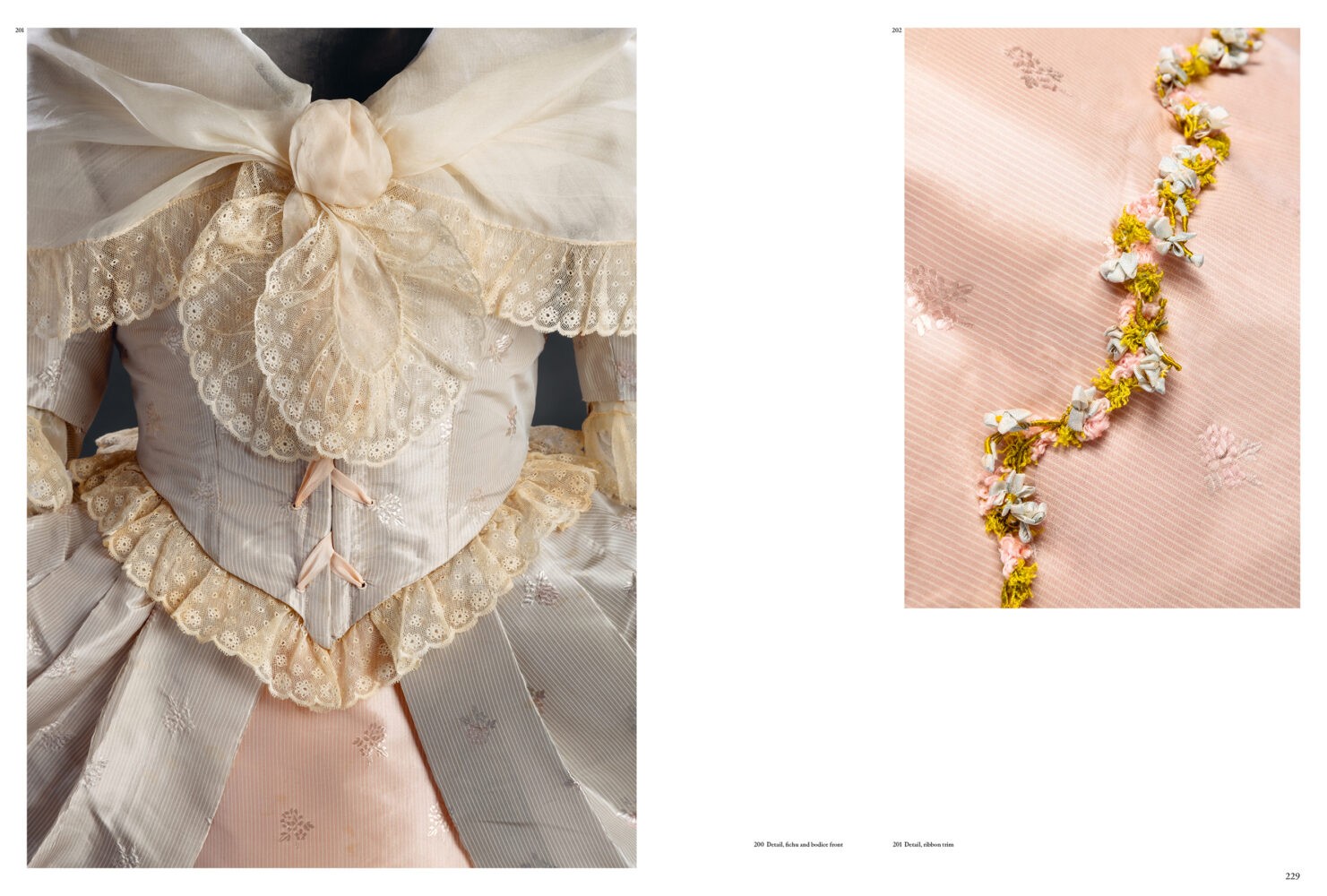 Una sezione presenta profili dettagliati di abiti straordinari, con immagini che ne mostrano aspetti non visibili in mostra: la costruzione interna, le etichette, dettagli ravvicinati di tessuti e materiali, e confronti con fotografie d’archivio degli invitati ai balli.