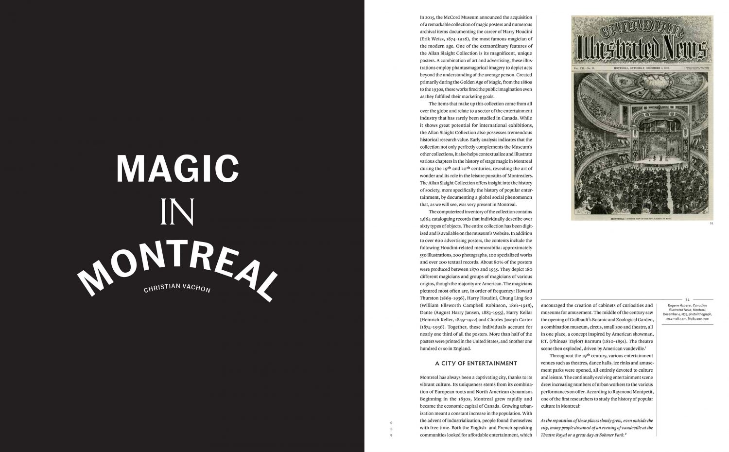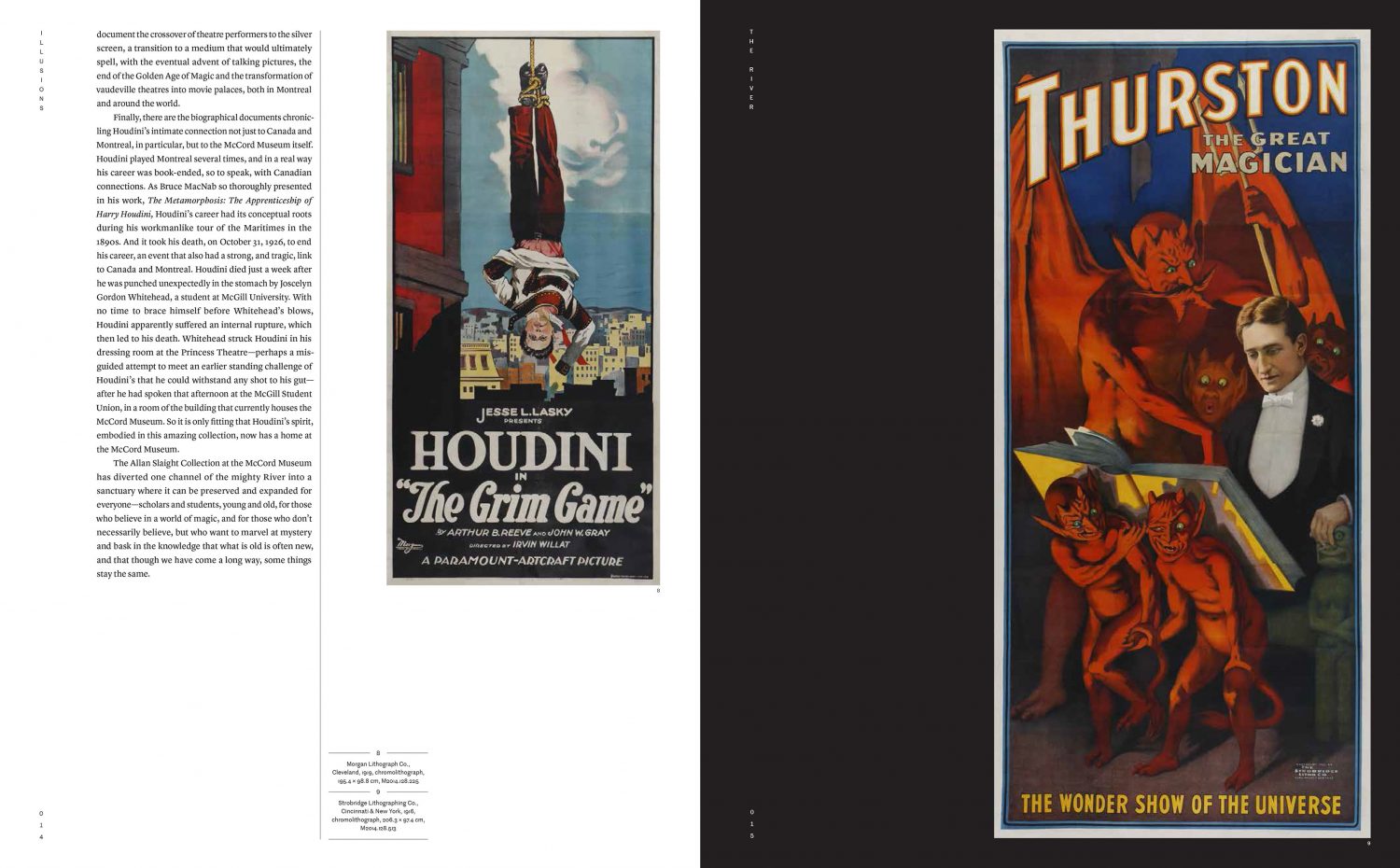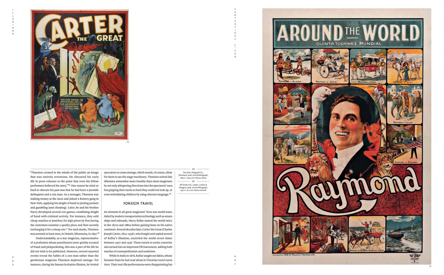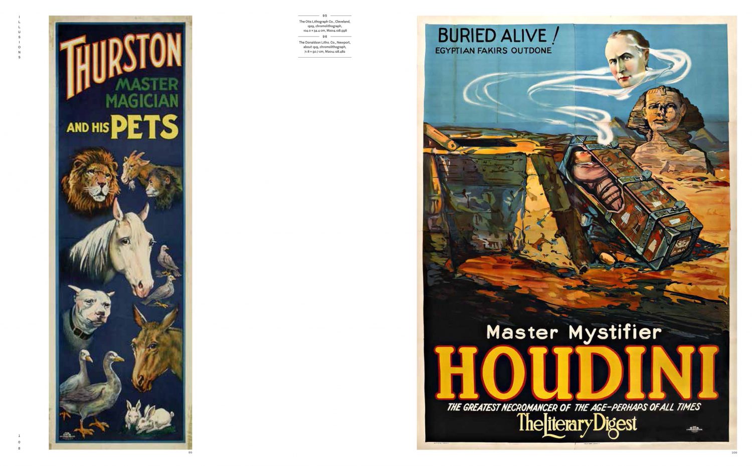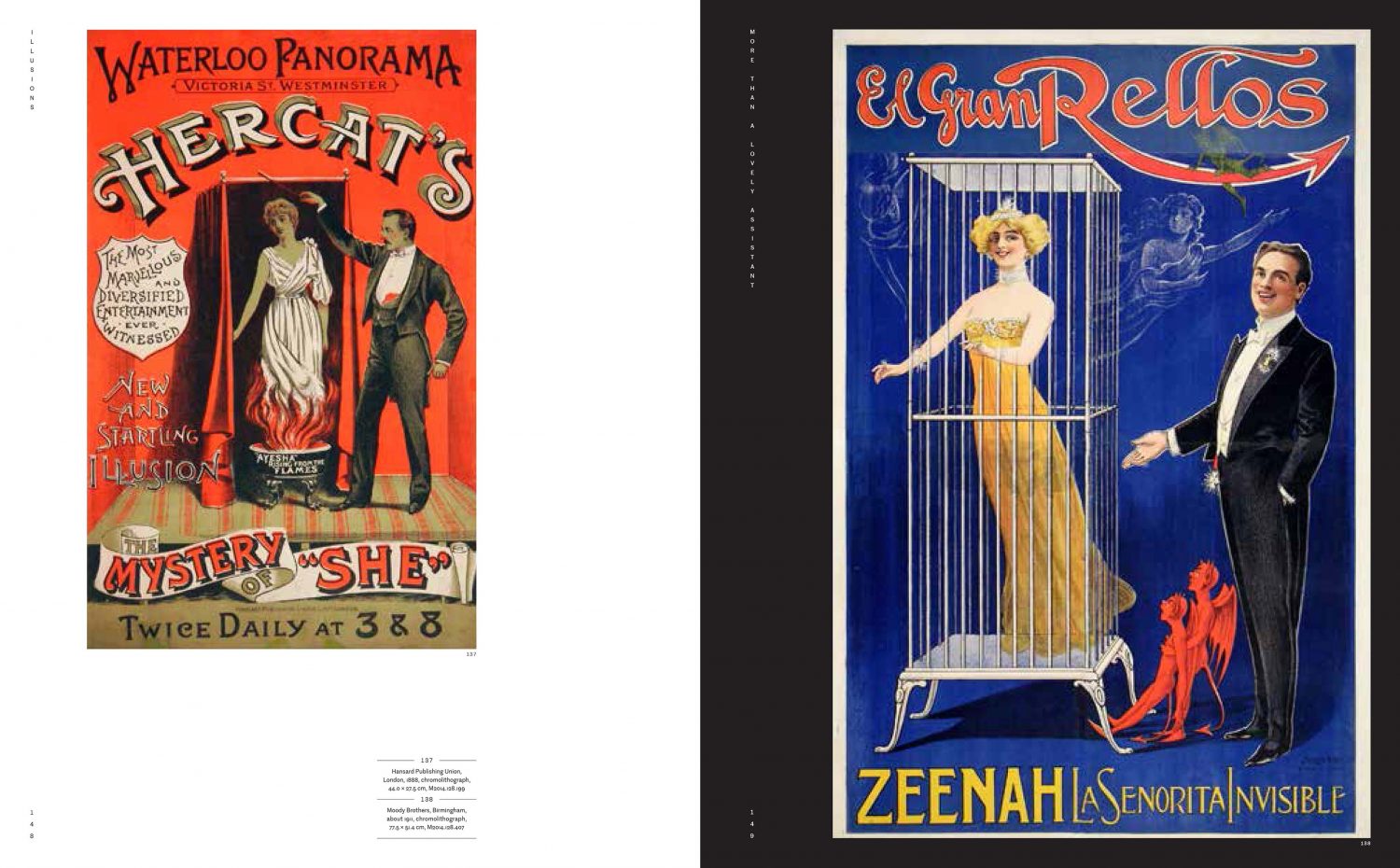 Nel 2015, la Allan Slaight Collection, la più grande collezioni mondiale di affiche e documenti di magia, è stata donata al McCord Museum di Montreal. Illusions pubblicato in concomitanza con la mostra Illusions – The Art of Magic allestita al McCord Museum, presenta 250 affiche straordinari di quella collezione che vanno dagli anni Ottanta del XIX secolo agli anni Quaranta del XX secolo. In quel periodo, noto come l’Epoca d’oro della magia, decine di maghi e prestigiatori ingaggiarono una vera e propria guerra pubblicitaria. Negli Stati Uniti come in Europa, le cittàerano tappezzate di manifesti con invitanti anticipazioni dei loro trucchi più spettacolari. I disegnatori e gli stampatori di quei manifesti s’ispiravano a demoni, scheletri e teschi, corpi e teste decapitate, carte e conigli, assistenti avvenenti e simboli di esotismo.