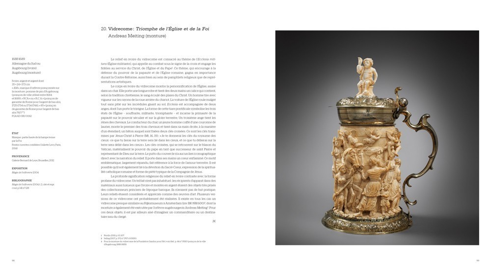 Seduzione estetica, realizzazione eccellente e interesse storico sono le tre direttrici fondanti della collezione della Fondation Gandur pour l’Art (Ginevra), creata nel 2010 e tutt’oggi in espansione. Questo primo volume ha l’obiettivo di catalogare le opere della collezione nelle quali la funzione ornamentale è strettamente connessa a quella narrativa. Si tratta nella maggior parte dei casi di opere scultoree – statuette e rilievi ornamentali – ma non meno rilevanti sono decorazioni bidimensionali che ospitano scene figurative legate alla classicità o al cristianesimo.