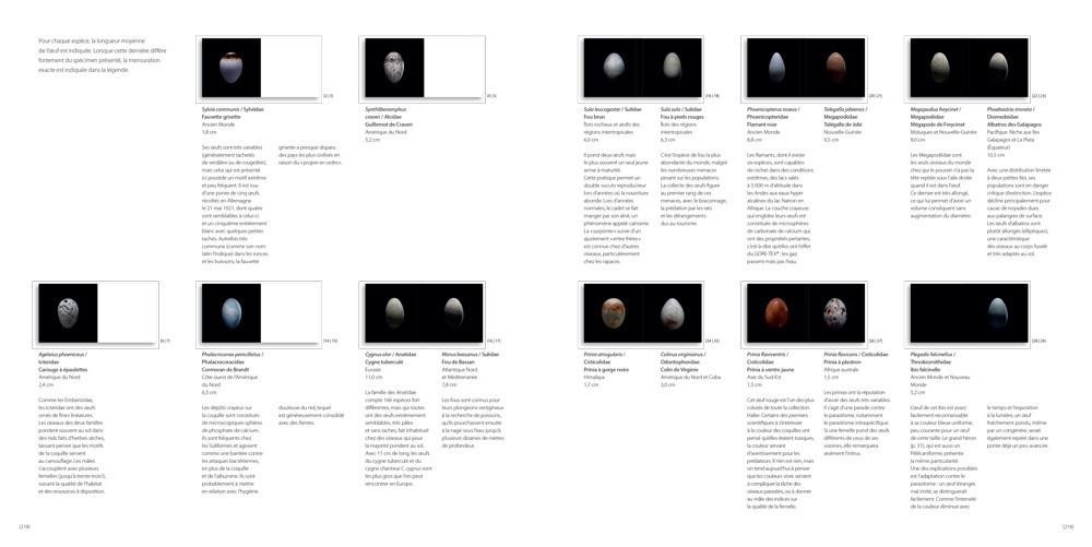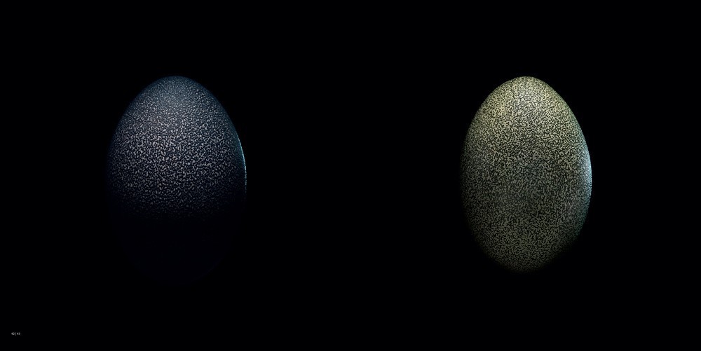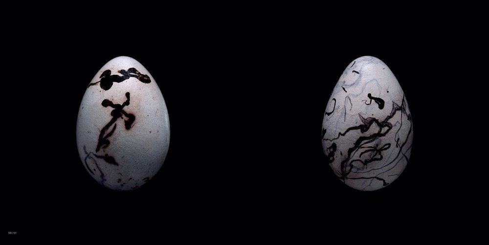 Rotonde, fragili, difficili da manipolare, le uova vengono raramente esposte al grande pubblico. Un vero peccato, poiché i dettagli dei disegni sui loro gusci rivelano bellezze insospettabili. Questi minuscoli disegni, disposti sulle pure linee curve della superficie delle uova, uniscono arabeschi a puntini, macchie, ombre e velature. Le tonalità sono delicate, talvolta semitrasparenti. Opachi o lucidi, porosi o lisci, questi capolavori su conchiglia coniugano caso e necessità con inaspettata inventiva e potenza.
