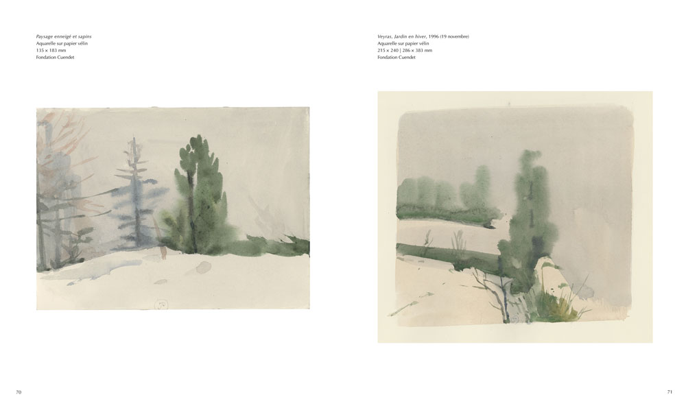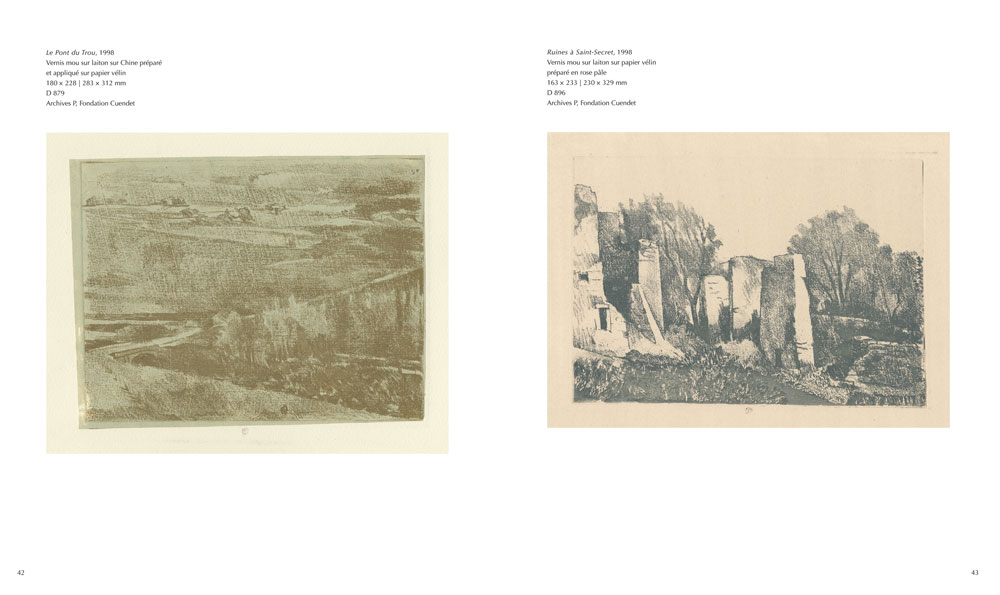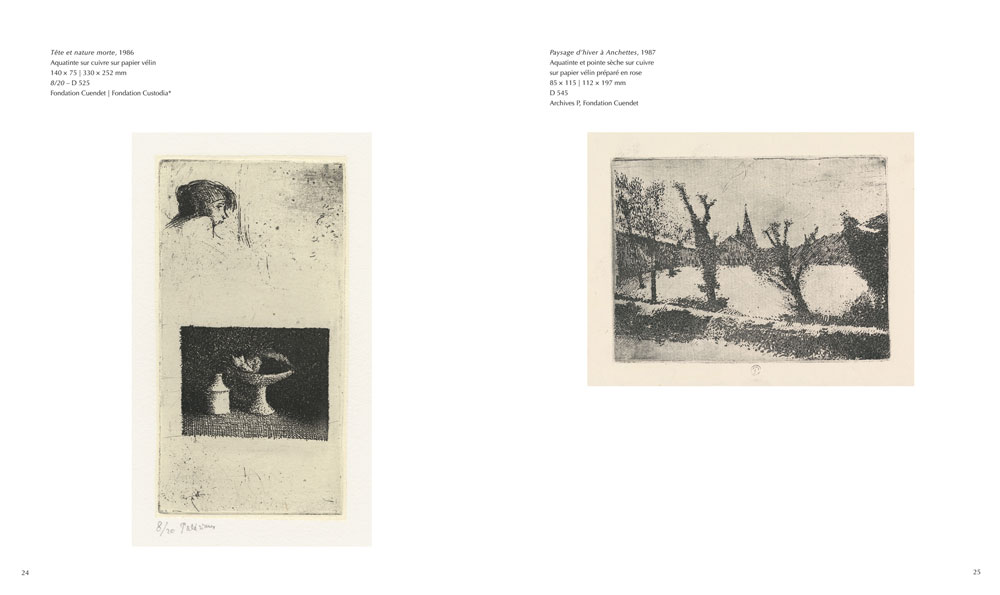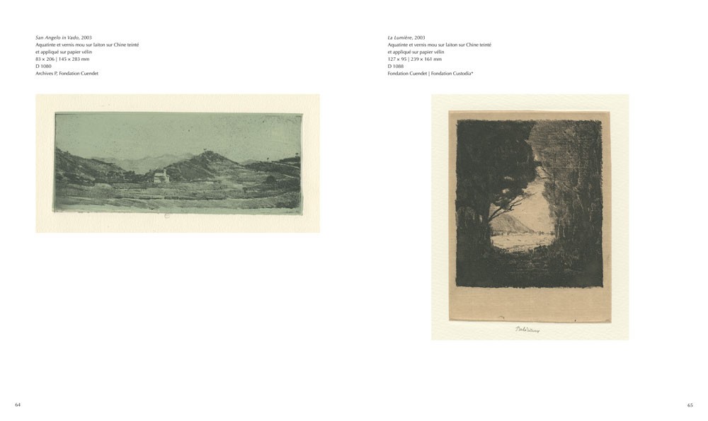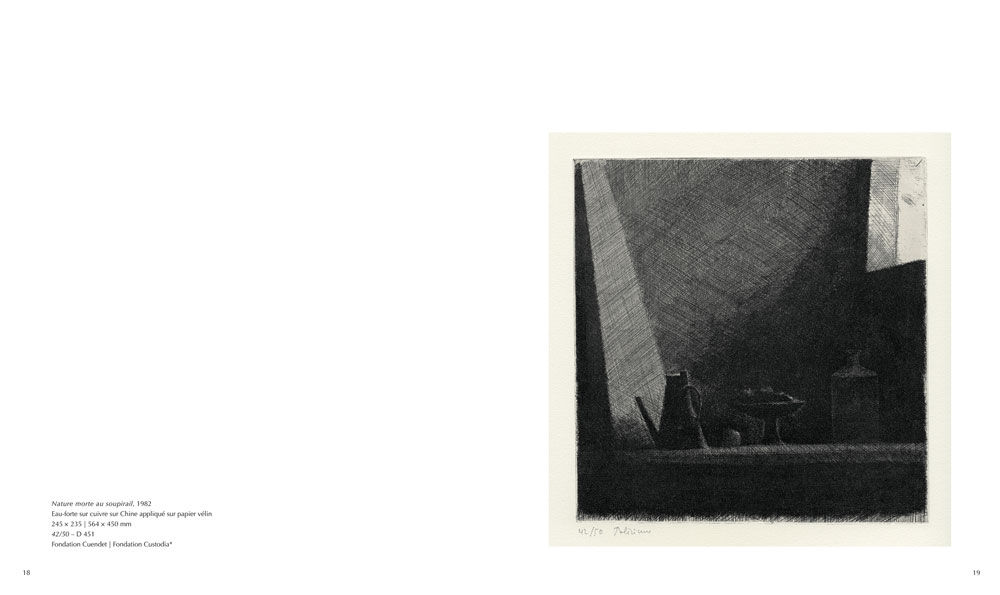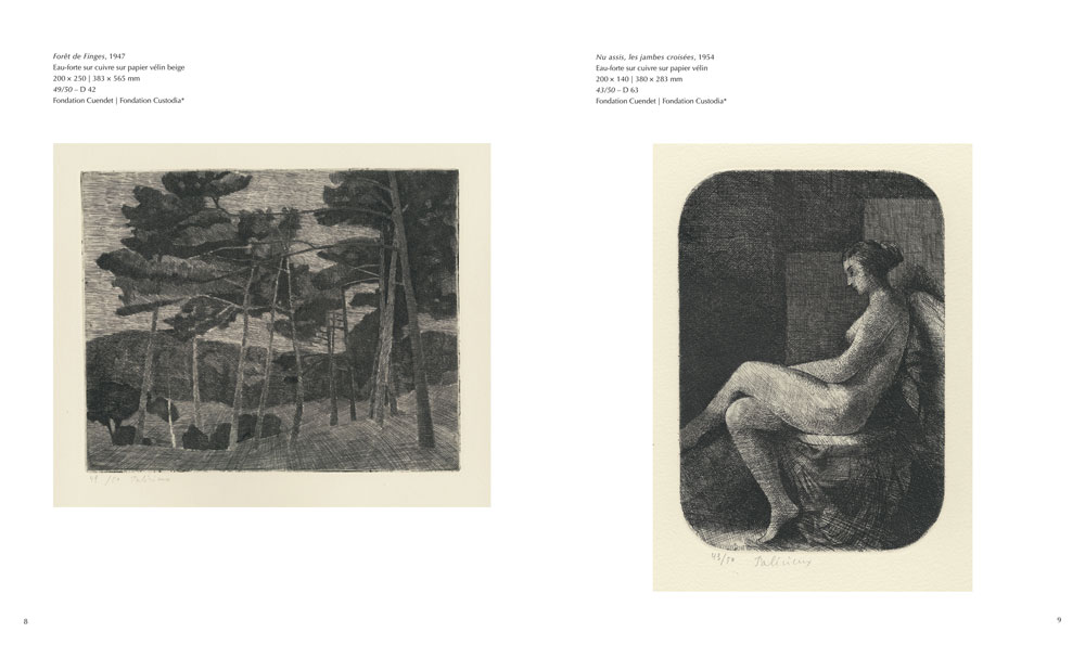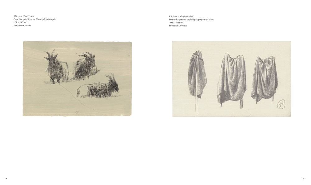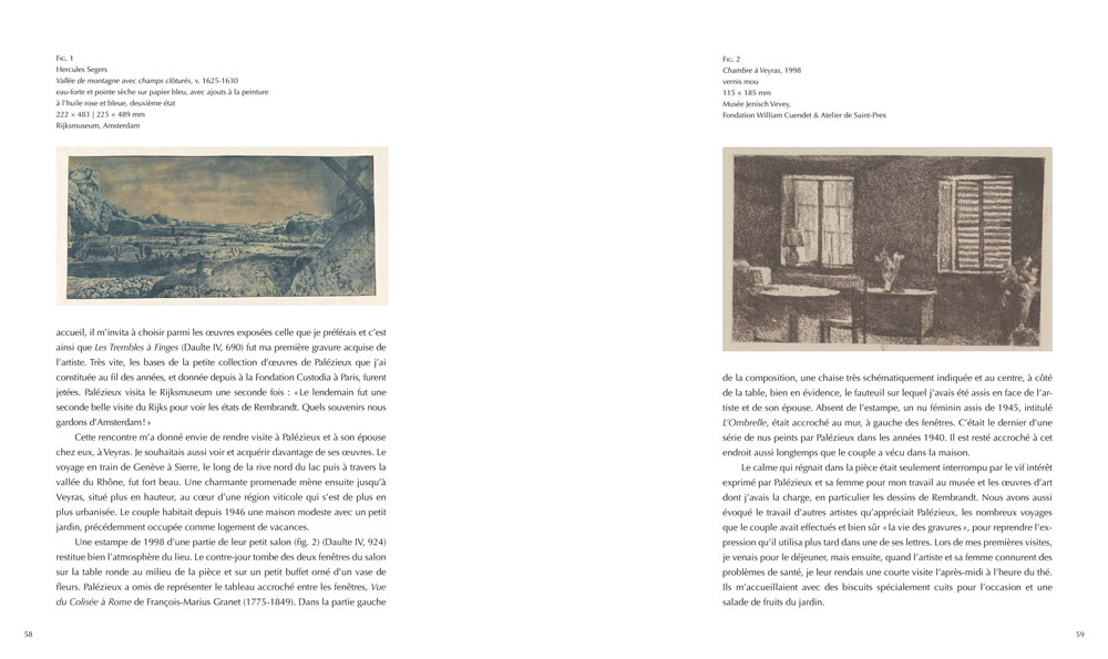 Quattro volumetti, simili a quaderni, ci introducono – anche a livello materico – all’opera su carta del pittore e incisore svizzero Gérard de Palézieux (Vevey 1919-Veyras 2012). Questi, dopo una formazione a Losanna presso l’École des beaux-arts, si trasferisce a Firenze dove rimane durante la Seconda Guerra Mondiale per poi trasferirsi nuovamente in Svizzera, nel canton Vallese, dove risiederà fino alla morte.